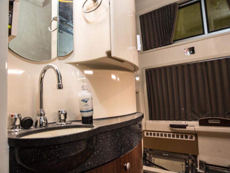 Yes, there are bathrooms on Amtrak trains. The bathrooms are pretty basic and include a toilet, toilet paper and hand sanitizer. Most bathrooms don’t have running water. As you will be using a bathroom on a moving vehicle, please use caution and hold on to a rail at all times.